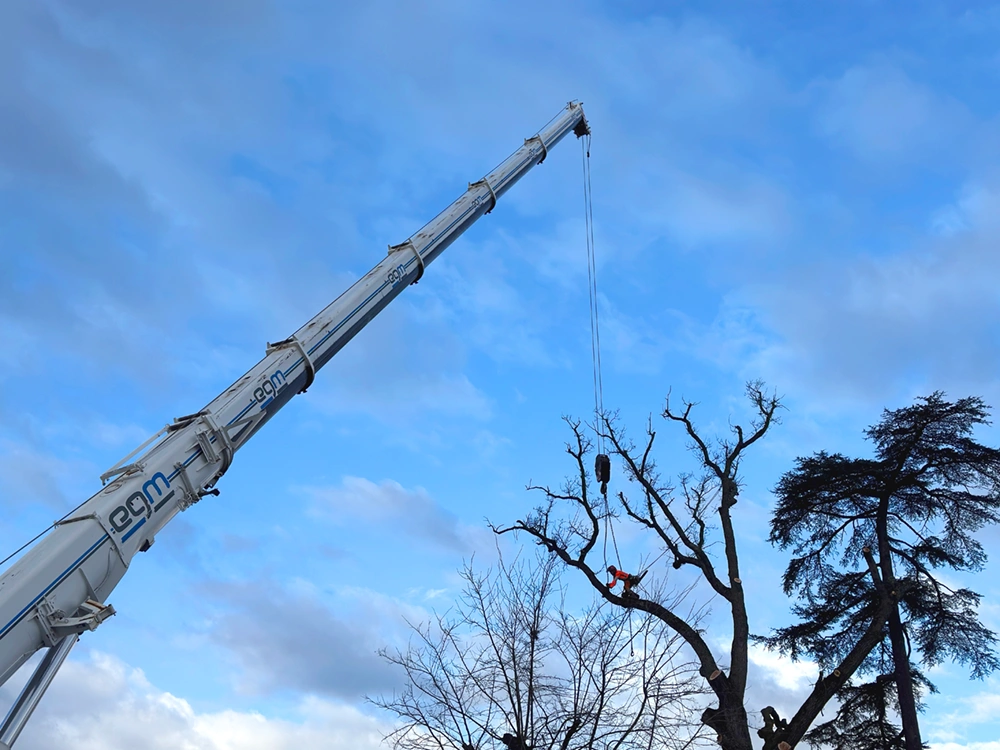 L’intervention à Charly représentait un défi technique et logistique majeur. L’arbre nécessitait une manipulation extrêmement précise pour éviter tout risque pour les élèves et le personnel de l’école voisine. La coordination entre la nacelle, la grue de 100 tonnes et les équipes au sol a été essentielle pour réaliser le démontage en toute sécurité.